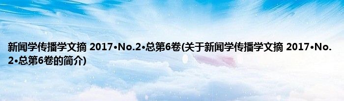 最佳答案大家好,新闻学传播学文摘 2017·No.2·总第6卷,关于新闻学传播学文摘 2017·No.2·总第6卷的简介很多人还不知道,现在让我们一起来看看吧! 1、 《新闻学传播学文摘(2017·No.2·总第6卷)》是2019年中国社会科学出版社出版的图书。2、 。本文关于新闻学传播学文摘 2017·No.2·总第6卷的简介就...