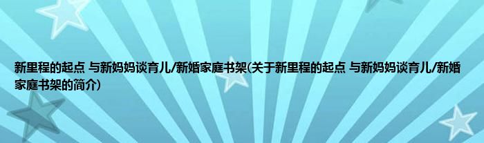 本文关于新里程的起点 与新妈妈谈育儿/新婚家庭书架的简介就讲解完毕,希望对大家有所帮助。