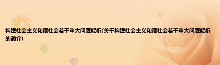 构建社会主义和谐社会若干重大问题解析(关于构建社会主义和谐社会若干重大问题解析的简介)