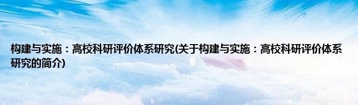 大家好,构建与实施:高校科研评价体系研究,关于构建与实施:高校科研评价体系研究的简介很多人还不知道,现在让我们一起来看看吧!