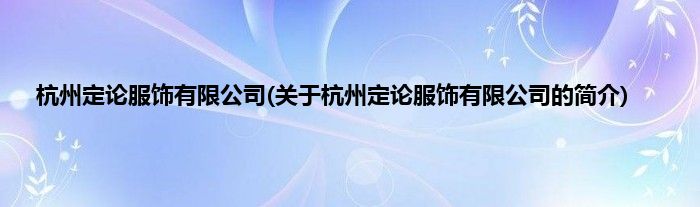 本文关于杭州定论服饰有限公司的简介就讲解完毕,希望对大家有所帮助。