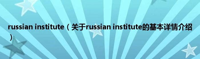 本文关于russian institute的基本详情介绍就讲解完毕,希望对大家有所帮助。