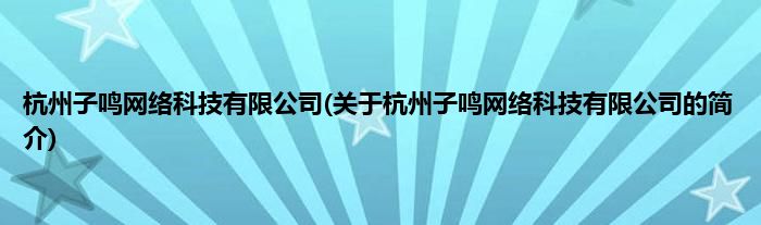 本文关于杭州子鸣网络科技有限公司的简介就讲解完毕,希望对大家有所帮助。