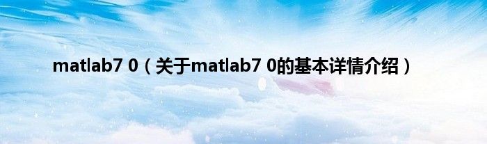 本文关于matlab7 0的基本详情介绍就讲解完毕,希望对大家有所帮助。