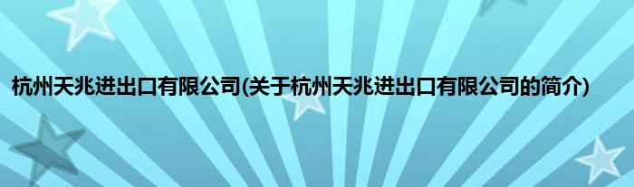 本文关于杭州天兆进出口有限公司的简介就讲解完毕,希望对大家有所帮助。