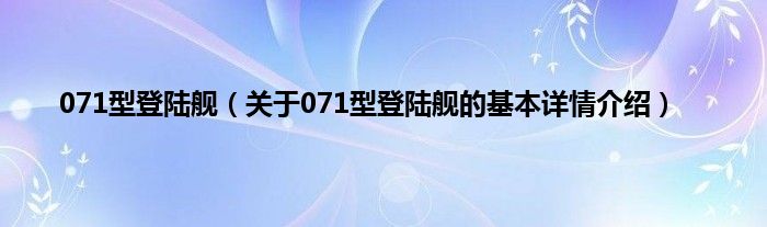 本文关于071型登陆舰的基本详情介绍就讲解完毕,希望对大家有所帮助。