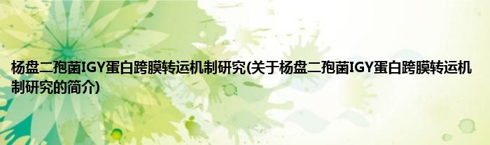 杨盘二孢菌IGY蛋白跨膜转运机制研究(关于杨盘二孢菌IGY蛋白跨膜转运机制研究的简介)