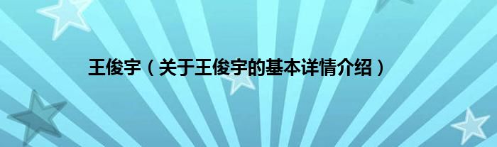 本文关于王俊宇的基本详情介绍就讲解完毕,希望对大家有所帮助。