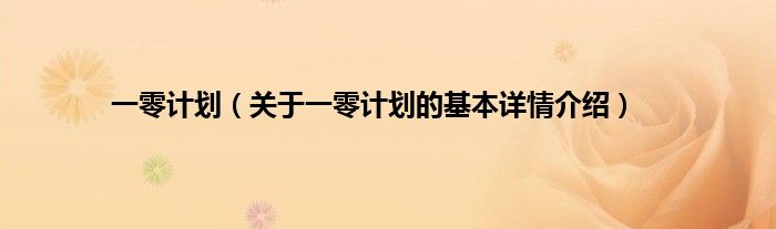 本文关于一零计划的基本详情介绍就讲解完毕,希望对大家有所帮助。