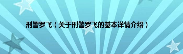 本文关于刑警罗飞的基本详情介绍就讲解完毕,希望对大家有所帮助。