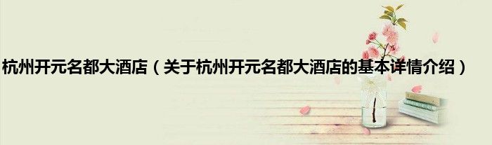 杭州开元名都大酒店(关于杭州开元名都大酒店的基本详情介绍)