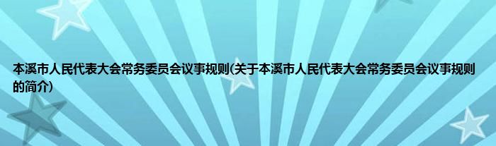 大家好,本溪市人民代表大会常务委员会议事规则,关于本溪市人民代表大会常务委员会议事规则的简介很多人还不知道,现在让我们一起来看看吧!