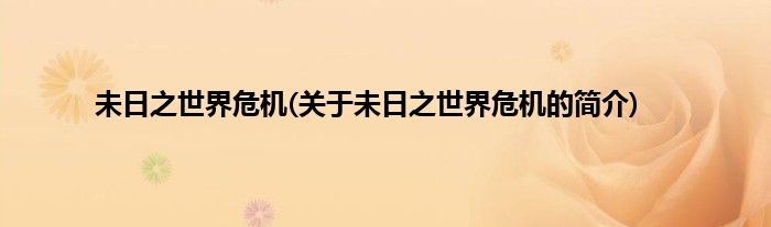 本文关于未日之世界危机的简介就讲解完毕,希望对大家有所帮助。