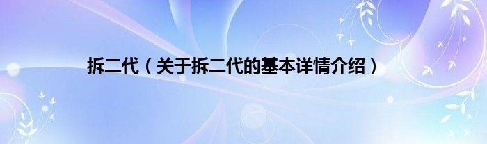 本文关于拆二代的基本详情介绍就讲解完毕,希望对大家有所帮助。