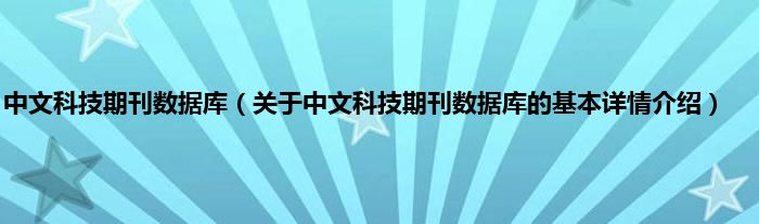 本文关于中文科技期刊数据库的基本详情介绍就讲解完毕,希望对大家有所帮助。