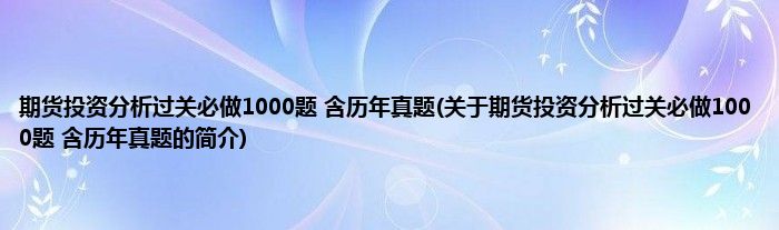 本文关于期货投资分析过关必做1000题 含历年真题的简介就讲解完毕,希望对大家有所帮助。