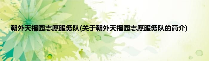 大家好,朝外天福园志愿服务队,关于朝外天福园志愿服务队的简介很多人还不知道,现在让我们一起来看看吧!