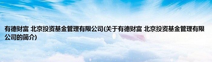 有德财富 北京投资基金管理有限公司(关于有德财富 北京投资基金管理有限公司的简介)
