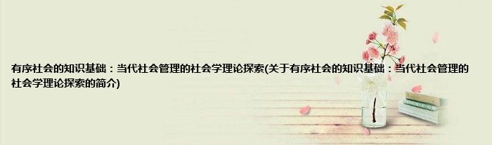 本文关于有序社会的知识基础:当代社会管理的社会学理论探索的简介就讲解完毕,希望对大家有所帮助。