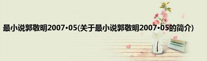 1、 《最小说郭敬明2007·05》是2007年长江文艺出版社出版的图书,作者是郭敬明。