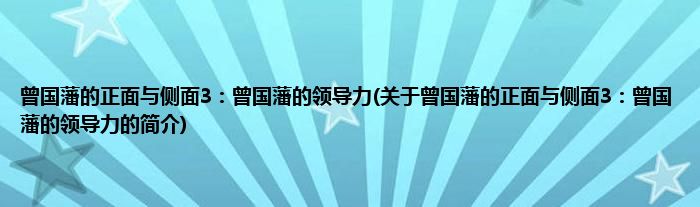 本文关于曾国藩的正面与侧面3:曾国藩的领导力的简介就讲解完毕,希望对大家有所帮助。