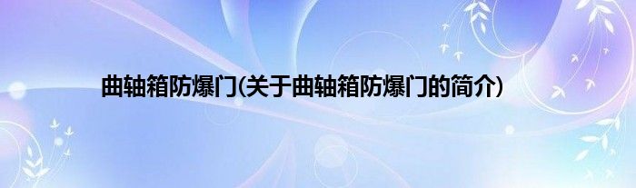 大家好,曲轴箱防爆门,关于曲轴箱防爆门的简介很多人还不知道,现在让我们一起来看看吧!