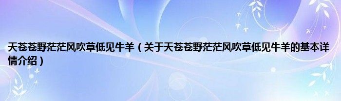 本文关于天苍苍野茫茫风吹草低见牛羊的基本详情介绍就讲解完毕,希望对大家有所帮助。