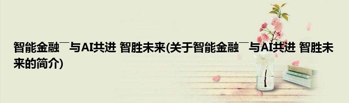 本文关于智能金融――与AI共进,智胜未来的简介就讲解完毕,希望对大家有所帮助。