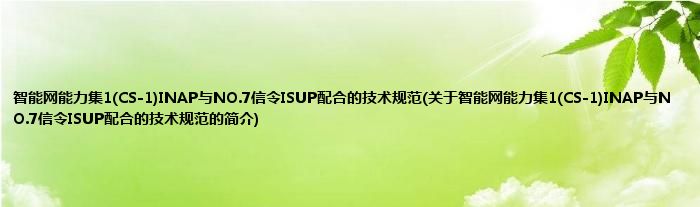 本文关于智能网能力集1(CS-1)INAP与NO.7信令ISUP配合的技术规范的简介就讲解完毕,希望对大家有所帮助。