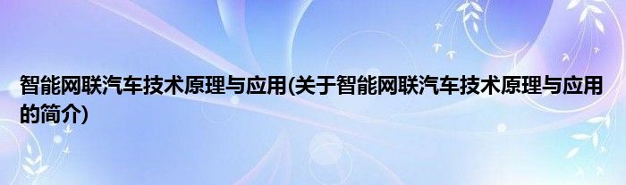 智能网联汽车技术原理与应用(关于智能网联汽车技术原理与应用的简介)