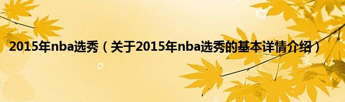 本文关于2015年nba选秀的基本详情介绍就讲解完毕,希望对大家有所帮助。