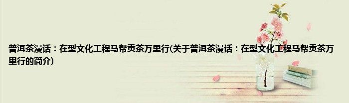 本文关于普洱茶漫话:在型文化工程马帮贡茶万里行的简介就讲解完毕,希望对大家有所帮助。