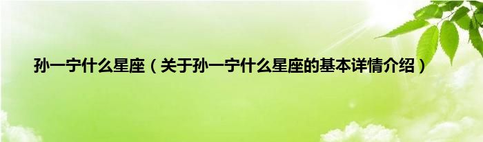 本文关于孙一宁什么星座的基本详情介绍就讲解完毕,希望对大家有所帮助。