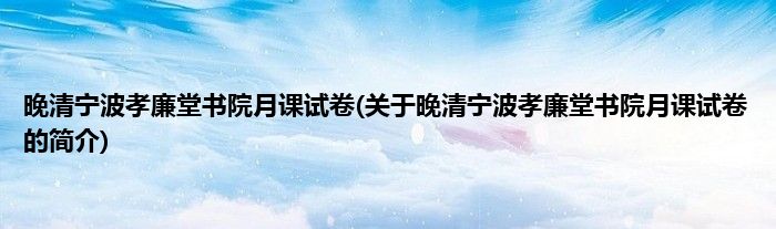 本文关于晚清宁波孝廉堂书院月课试卷的简介就讲解完毕,希望对大家有所帮助。