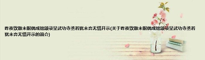 本文关于昨夜饮散未眠偶成拙颂录呈武功寺丞若犹未弃无惜开示的简介就讲解完毕,希望对大家有所帮助。