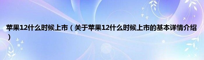 本文关于苹果12什么时候上市的基本详情介绍就讲解完毕,希望对大家有所帮助。