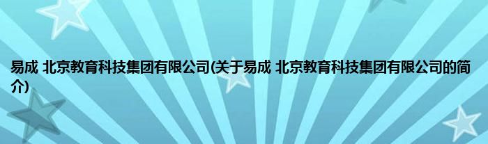 本文关于易成 北京教育科技集团有限公司的简介就讲解完毕,希望对大家有所帮助。