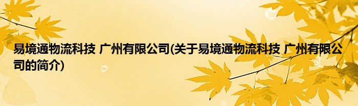易境通物流科技广州有限公司(关于易境通物流科技广州有限公司的简介)