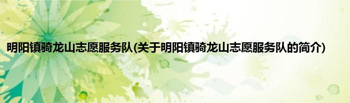 大家好,明阳镇骑龙山志愿服务队,关于明阳镇骑龙山志愿服务队的简介很多人还不知道,现在让我们一起来看看吧!