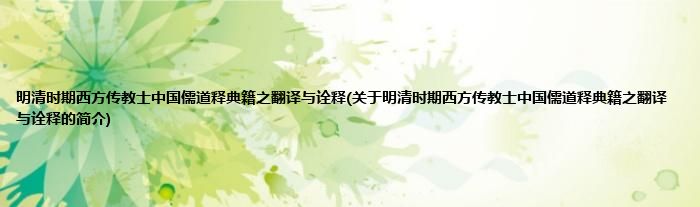 本文关于明清时期西方传教士中国儒道释典籍之翻译与诠释的简介就讲解完毕,希望对大家有所帮助。
