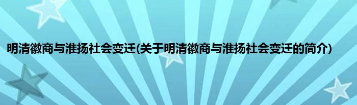 大家好,明清徽商与淮扬社会变迁,关于明清徽商与淮扬社会变迁的简介很多人还不知道,现在让我们一起来看看吧!