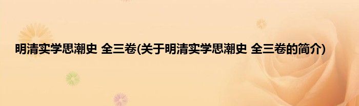 本文关于明清实学思潮史 全三卷的简介就讲解完毕,希望对大家有所帮助。