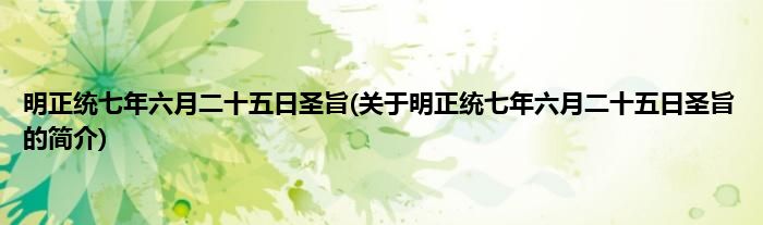 明正统七年六月二十五日圣旨(关于明正统七年六月二十五日圣旨的简介)