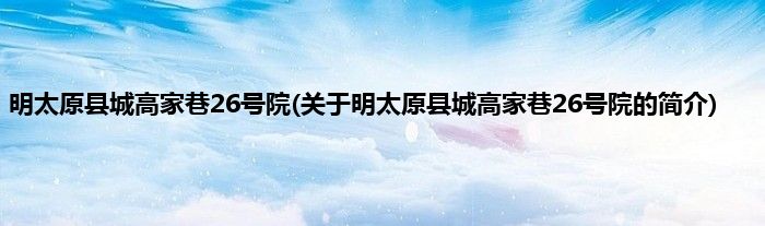 1、 明太原县城高家巷26号院以文物建筑及民居旧门牌而命名的地名。