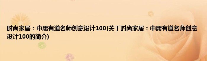 时尚家居:中庸有道名师创意设计100(关于时尚家居:中庸有道名师创意设计100的简介)
