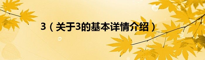 本文关于3的基本详情介绍就讲解完毕,希望对大家有所帮助。