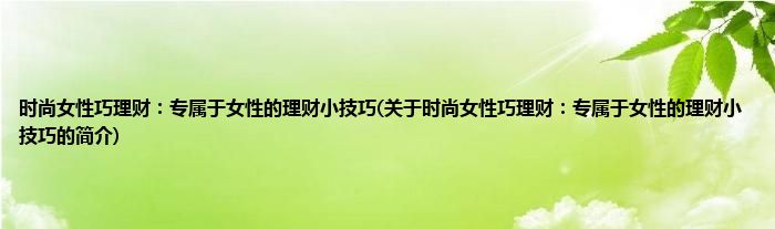 本文关于时尚女性巧理财:专属于女性的理财小技巧的简介就讲解完毕,希望对大家有所帮助。