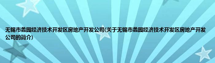 本文关于无锡市蠡园经济技术开发区房地产开发公司的简介就讲解完毕,希望对大家有所帮助。
