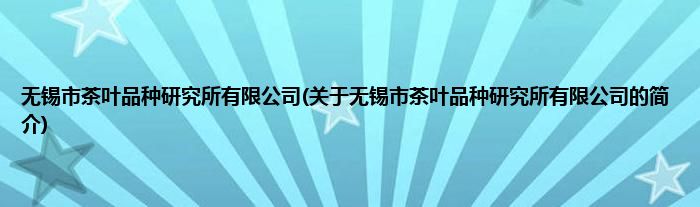 大家好,无锡市茶叶品种研究所有限公司,关于无锡市茶叶品种研究所有限公司的简介很多人还不知道,现在让我们一起来看看吧!
