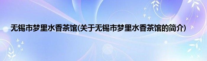 大家好,无锡市梦里水香茶馆,关于无锡市梦里水香茶馆的简介很多人还不知道,现在让我们一起来看看吧!